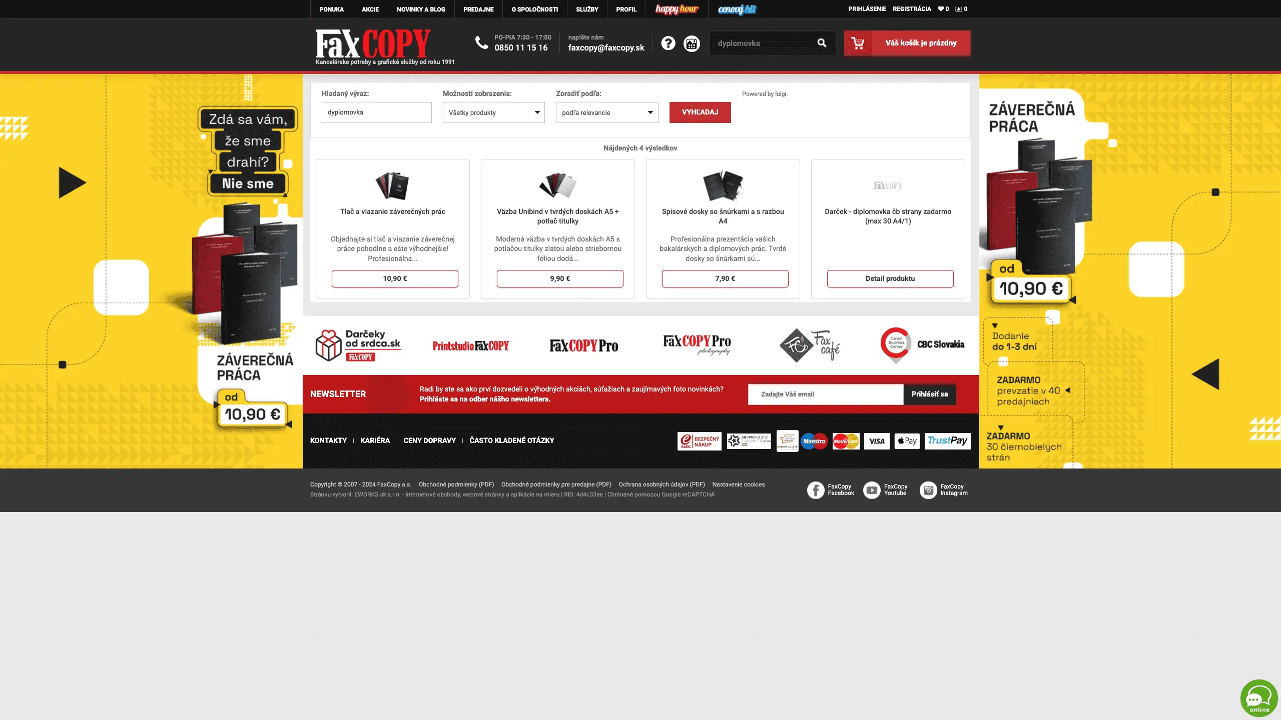 FaxCopy a.s., established in 1991, is a Slovak company headquartered in Bratislava. It has grown to offer a wide array of services beyond its original reprographic services, including sales of office and IT equipment, photo and video products, office supplies, and original photo gifts. The company aims to cater to various customer needs, whether setting up a new office or providing personalized gift options. Over the years, FaxCopy a.s. has expanded its network of branches throughout Slovakia, making its services readily accessible to a broad customer base (EMIS Next).