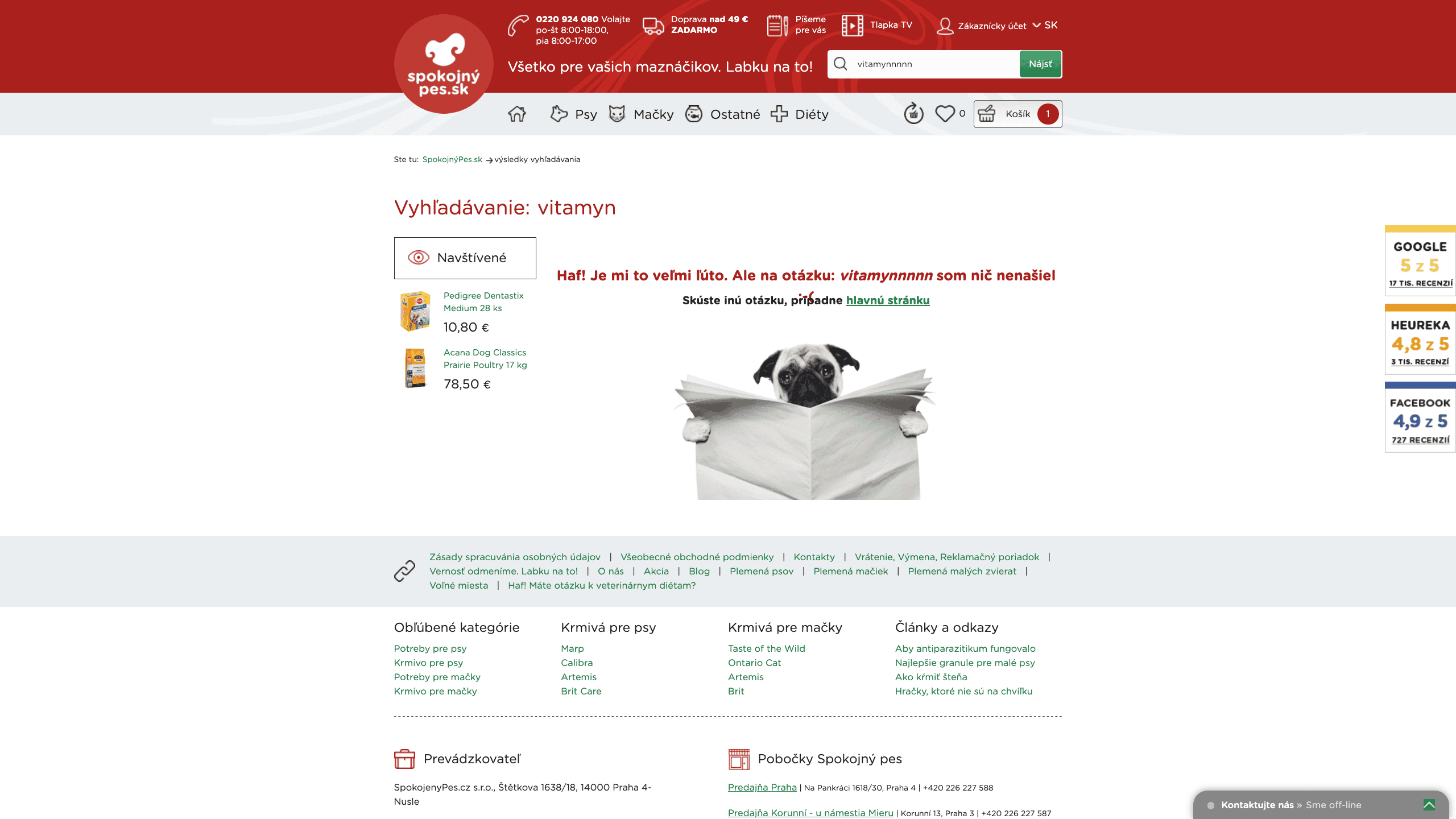 SpokojnyPes originally had a search solution that wasn’t able to handle typos. Luigi’s Box Search with Typo correction and Typo tolerance features came to help, so customers won’t run into “no results” pages anymore.